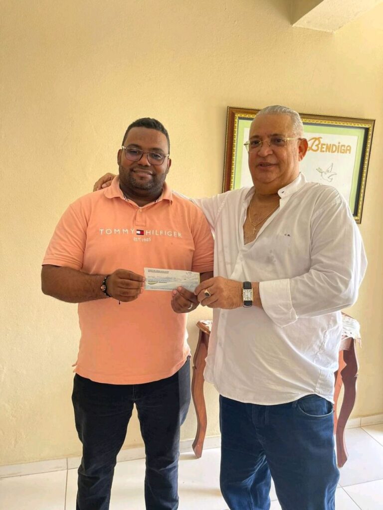 En nombre del Cro-Gregorio Hiraldo del Orbe. Presidente de la FP Villa Riva y nuestro Vice-Presidente. José Del Carmen(Carmelo Reyes).Le hacen entrega formal de 50.000 al Rev.P. Hannly A. Sosa Capellán.