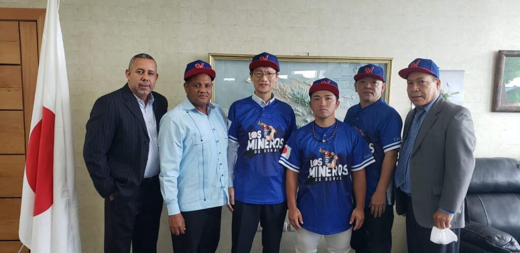 El embajador japonés dio a conocer su satisfacción de cooperación durante una visita que le hiciera a su despacho de la embajada una delegación de béisbol de la Provincia Monseñor Nouel, de Bonao, encabezada, además de Víctor Vásquez Sosa (Quique), por Domingo Reyes, tesoreros de los Mineros y de la asociación; Ruperto Ruck, periodista de Santiago. Así como el doctor Kochi Akimoto y el jugador Issei Maehara, quien reforzará este año a la escuadra representativa de los Mineros.