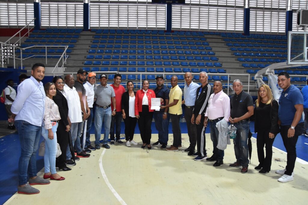 La Gobernadora de la Provincia Duarte, Ana Xiomara Cortés, entregó a los directivos del Club San Martín de Porres de San Francisco de Macorís, un cheque contentivo de los fondos para la remodelacion del tabloncillo de esas instalaciones deportivas valorado en 5,723, 063.