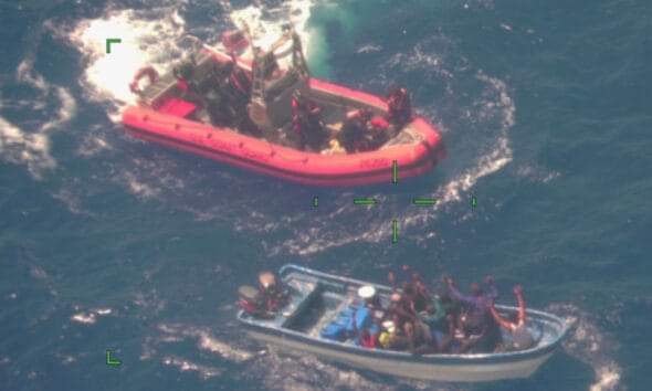 Una aeronave de Aduanas y Protección Fronteriza detectó la embarcación sospechosa a aproximadamente 67 millas náuticas (124 kilómetros) al norte de Aguadilla, en el noroeste de Puerto Rico.