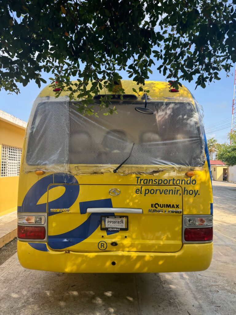 VILLA RIVA.– Un autobús del Sistema de Transporte Estudiantil (TRAE), asignado por el Ministerio de Educación al municipio Villa Riva, lleva varios meses fuera de servicio tras presentar una rotura en el cristal trasero, lo que ha generado inquietud entre padres, maestros y representantes del sector educativo.