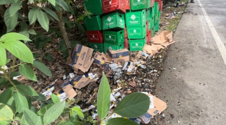 El accidente, que sólo dejó pérdidas económicas, congestionó durante un buen rato la carretera Nagua-San Francisco, por la cantidad de gente que se concentró a recoger la bebida alcohólica.