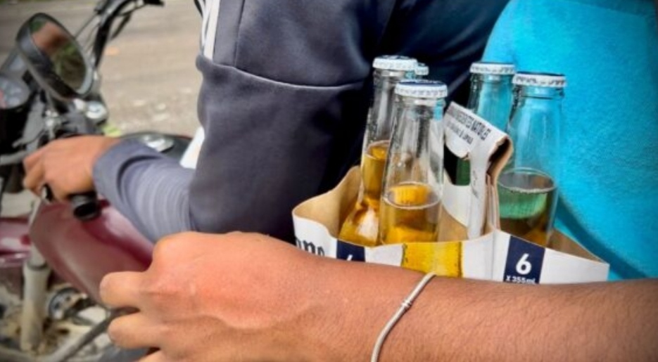 VILLA RIVA.- Decenas de personas se concentraron este sábado en la comunidad de Jobobán, en Villa Riva, donde un camión cargado de cervezas de distintos tipos, botó parte de la carga que llevaba la cola.