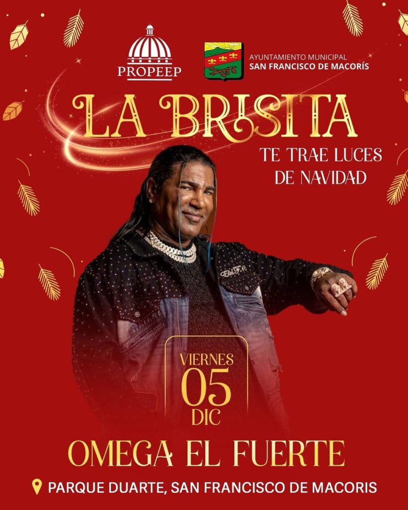 Este viernes 05 de diciembre disfrutaremos en vivo de Omega El Fuerte, encendiendo la celebración como solo él sabe hacerlo. 📍 Parque Duarte, San Francisco de Macorís 🕒 7:00 P.M. ✨