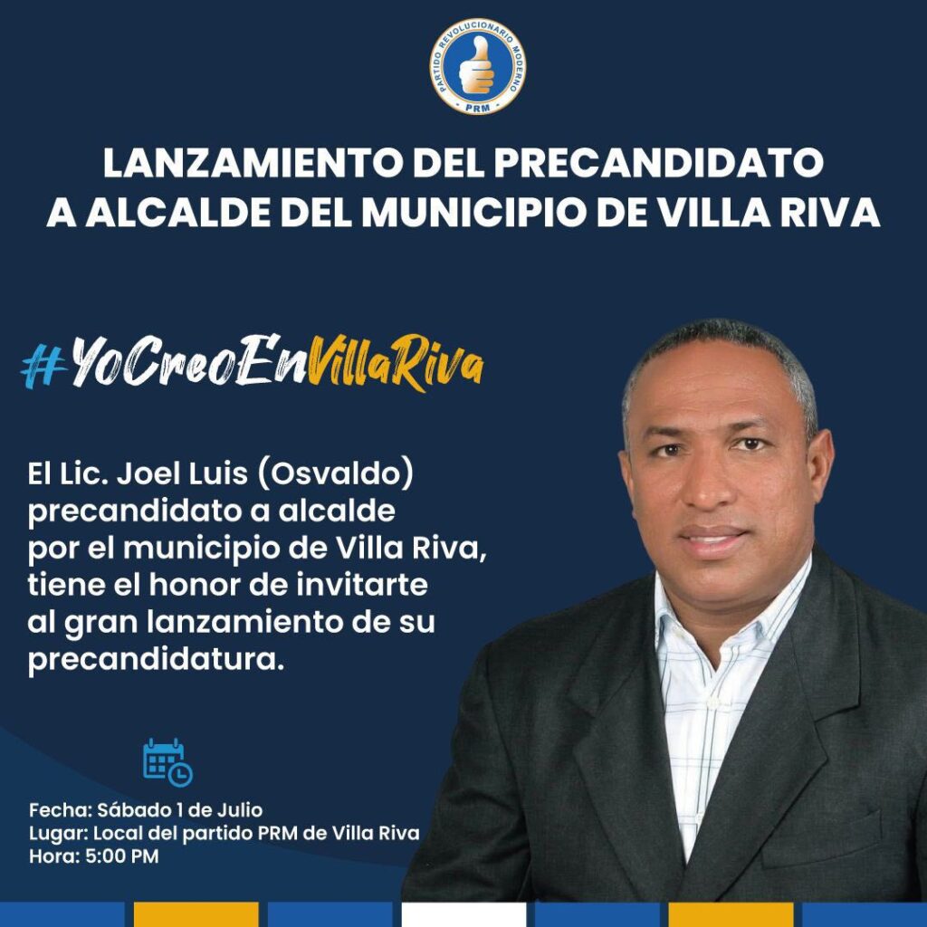 Porque Villa Riva lo pide Joel Luis Alcalde 24-28 El licenciado Joel Luis invita al pueblo en general al lanzamiento de su precandidatura a Alcalde por el municipio de Villa Riva Provincia Duarte 2023-06-28 admin