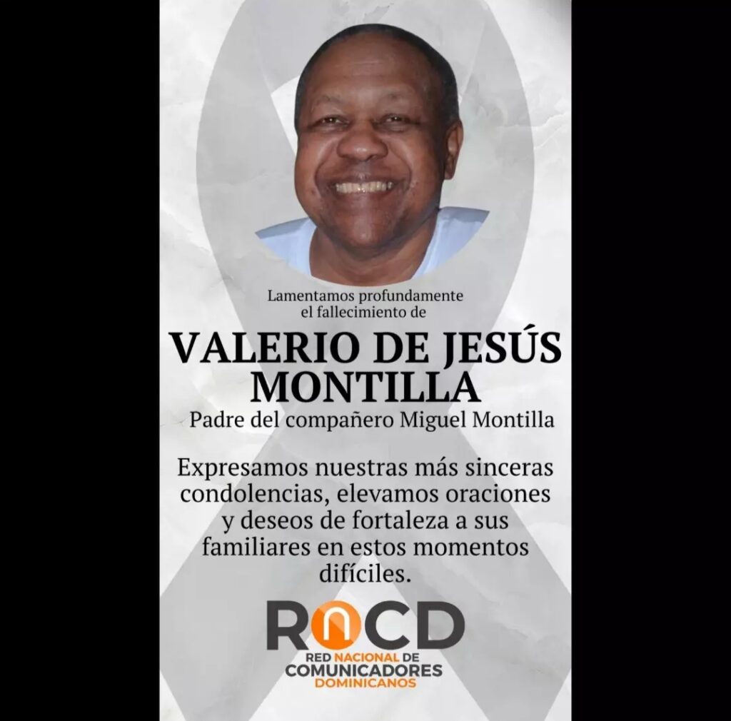 San Francisco de Macorís.-Falleció este lunes Valerio de Jesús Montilla García, mejor conocido como Yeyo, quien era el progenitor de los periodistas francomacorisanos Miguel y Nurilissa Montilla.