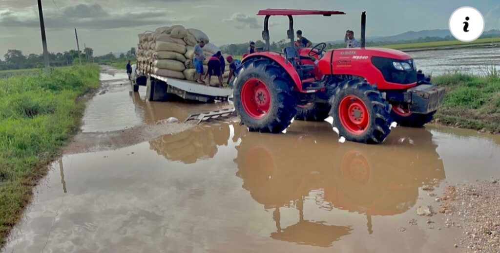 VILLA RIVA.- Productores de arroz y transportistas continúan sufriendo en Villa Riva, por el mal estado en que se encuentra la carretera que comunica este municipio con la autovia del Nordeste, única vía de acceso para trasladar los frutos.