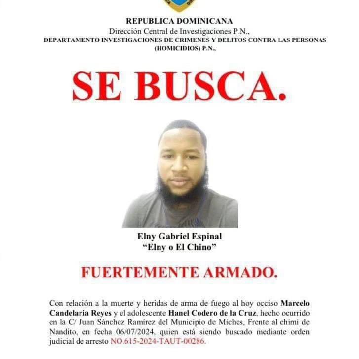 Las autoridades judiciales han emitido una orden de captura contra Elny Gabriel Espinal, marcada con el número NO.615-2024-TAUT-00286.