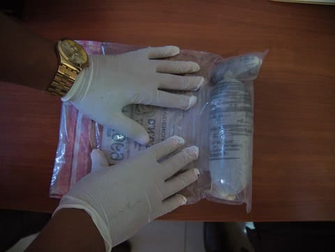 La mujer de nacionalidad curazoleña fue trasladada al Hospital de las Fuerzas Armadas, donde un equipo médico le asistió y durante varios días expulsó dos porciones grandes que llevaba en sus partes íntimas y 35 bolsitas en el estómago.
