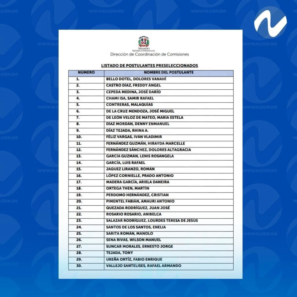 Ademas de José Darío Cepeda Medina, otros preseleccionados son; Dolores Vanahí Bello Dotel, Freddy Ángel Castro Díaz, Samir Rafael Chami Isa y Malaquías Contreras.