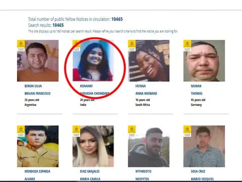 La Interpol emite alerta de búsqueda por Sudiksha Konanki