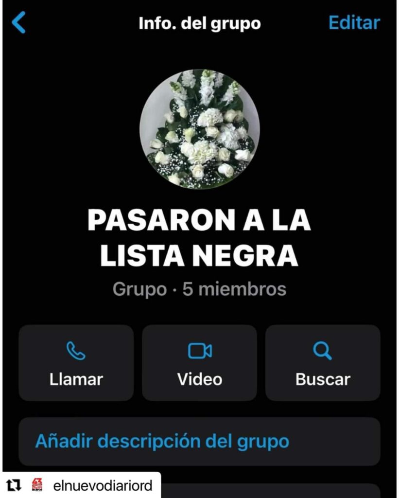 Tras sus amenazas, la usuaria procedió a incluir el contacto de denuncias de el medio a un grupo de WhatsApp, cuyo nombre es «Pasaron a Lista Negra», en donde tiene incluidas a otras personas.