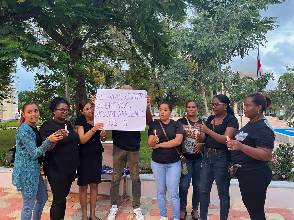 AZUA,RD.- Profesores que participaron en el concurso de oposición y quedaron en el banco de elegibles, montaron la tarde de este miércoles una protesta con encendido de velas en el parque Central Juan Pablo Duarte de esta ciudad de Azua en reclamo de que el Ministerio de Educación lo coloqué en el puesto que ello dicen se han ganado.