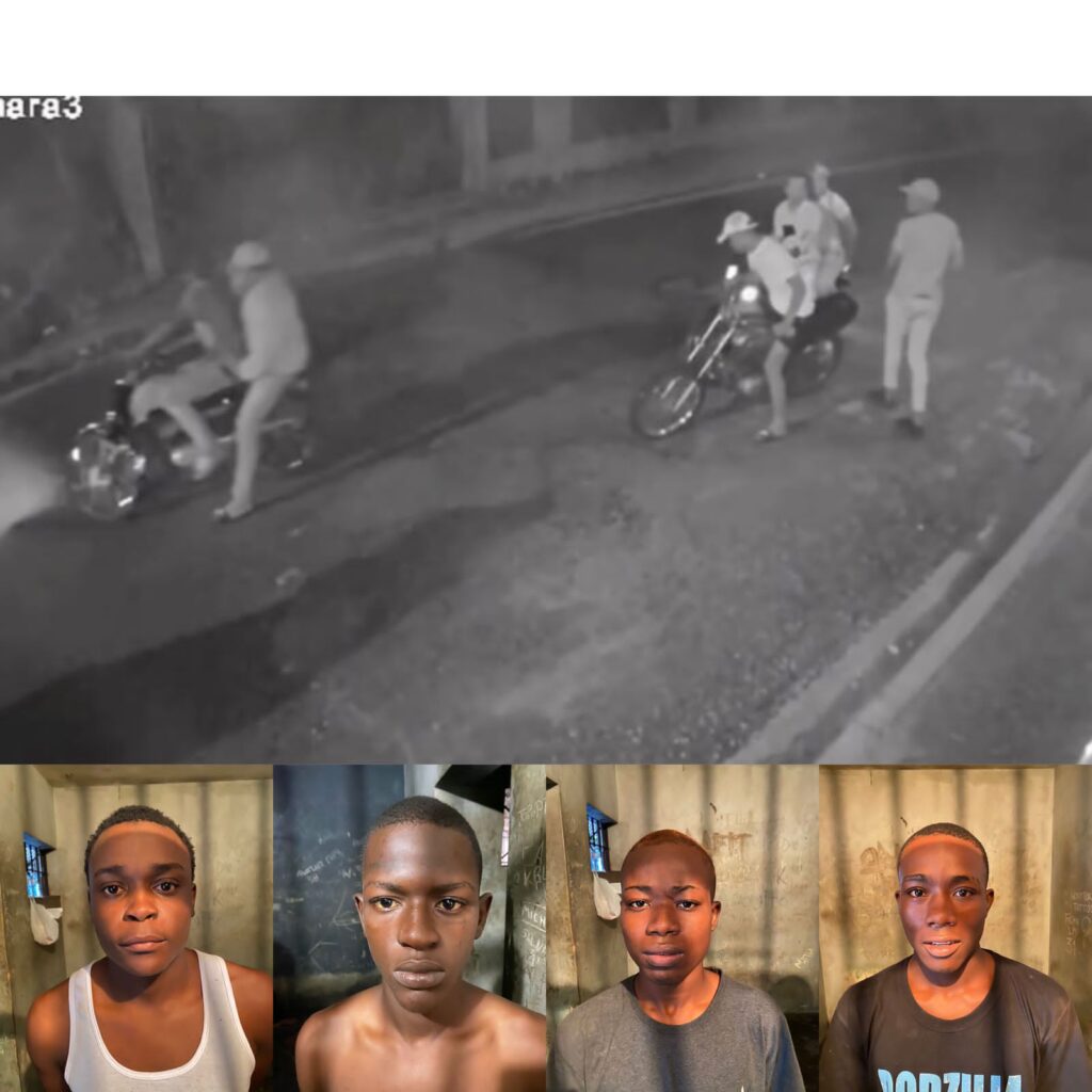 Los detenidos, quienes perpetraron el asalto mientras también transitaban en tres motocicletas, son Mario José Sala Ubaldo, de 20 años; Elvis Simeón Sánchez (Pingüino), de 18; Jeisel Araujo Rodríguez, de 18, y Breslin Díaz Salas (Yonayhan), de 20.