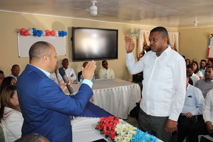 Azua – El director Regional 03, Azua Jorge Antonio De Los Santos, posesionó este lunes al maestro Elvido Delgado como nuevo director del Distrito Educativo 03-02 de Padre Las Casas, en sustitución del Sr. Juan José Mejía Mejía, quien fue jubilado mediante el Decreto No. 44-25.