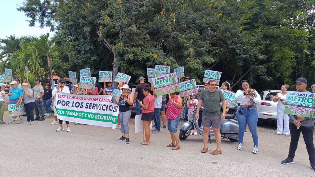 San Pedro de Macorís, Juan Dolió.- Los residentes del Complejo Inmobiliario Metro Country Club llevaron a cabo una protesta este sábado para exigir a los administradores del lugar mejoras urgentes en servicios esenciales como seguridad, suministro de energía eléctrica, agua potable y pavimentación de calles.