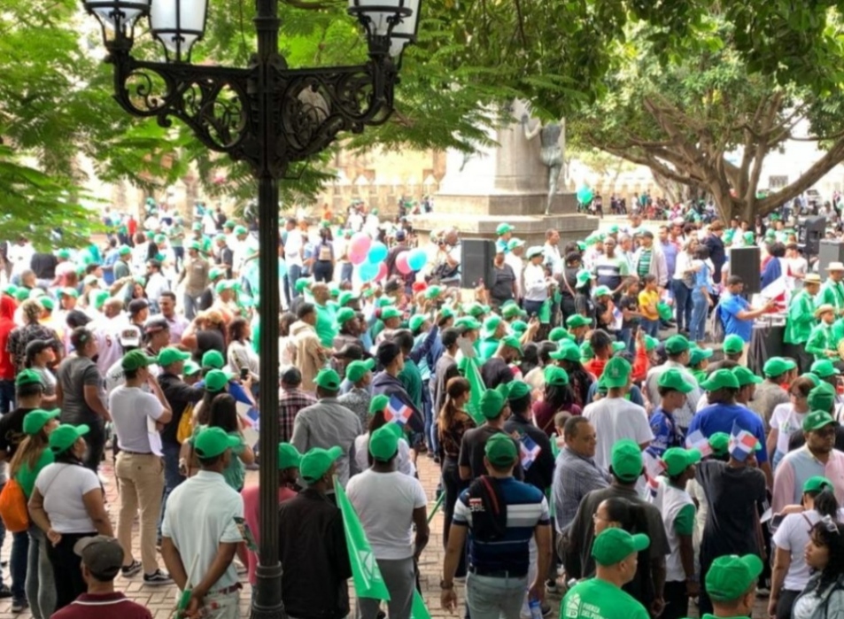 Santo Domingo.- Simpatizantes y dirigentes del Partido Fuerza del Pueblo (FP), se reunieron este lunes en el Parque Colón desde donde llevaron a cabo la marcha “Juntos por la Patria”.