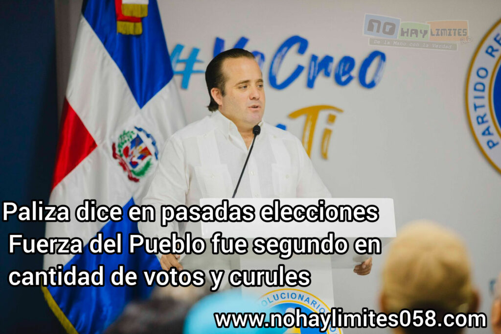 Santo Domingo.- El presidente del Partido Revolucionario Moderno (PRM), José Ignacio Paliza, dijo este lunes que el Partido Fuerza del Pueblo (FP), fue el segundo partido en cantidad de votos y curules obtenidos en las pasadas elecciones congresuales y presidenciales celebradas el 19 de mayo.