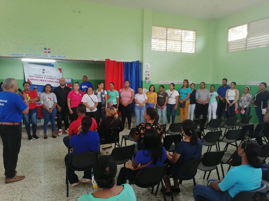 La Asociación Dominicana de Profesores, seccional del municipio Jima Abajo, provincia La Vega piquetearon la mañana de este viernes frente al local del Distrito educativo 06_10 de esta localidad y entregaron nueva vez sus peticiones, dando un plazo de 15 días para que le comiencen a resolver sus reclamos.