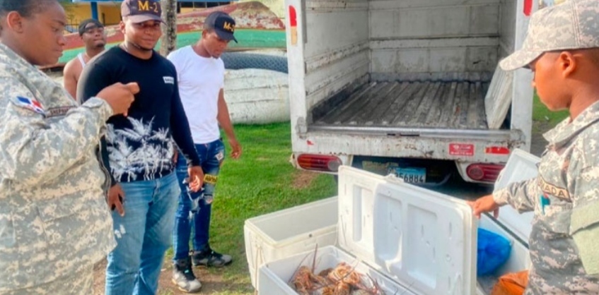 En un operativo conjunto, CODOPESCA y la Armada Dominicana detuvieron a una persona en la Provincia de Samaná, transportando de manera ilegal unas 180 libras de langostas, especie que se encuentra en periodo de veda.