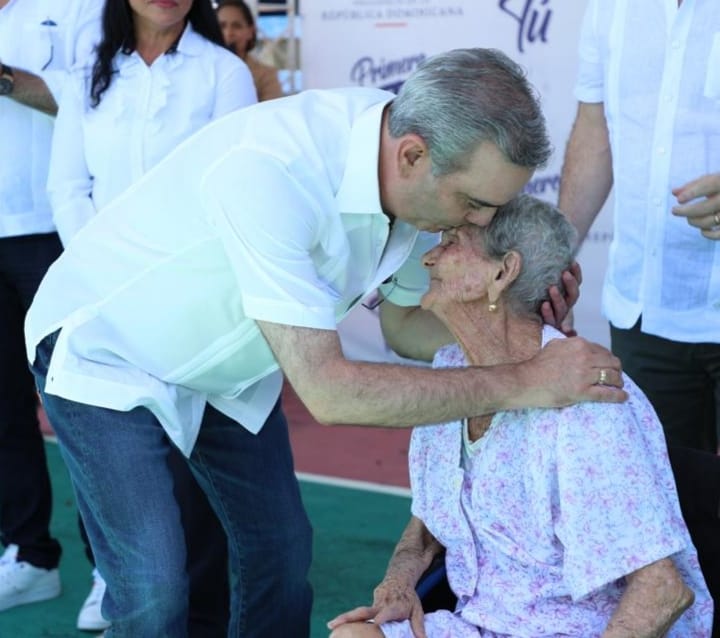 Al visitar el Politécnico Profesor Noé Brito Bruno, el mandatario recibió con alegría a la señora Altagracia De La Cruz, con 105 años de edad, quien se convirtió en la beneficiaria número 110 mil del programa Primero Tú y recibió una pensión solidaria así como la promesa de la reparación de su casa.